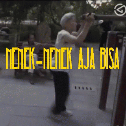 An inspiring grandma demonstrates her strength and fitness while exercising on outdoor gym equipment.