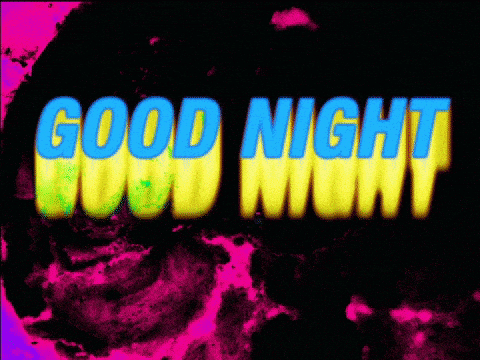Vibrant 'GOOD NIGHT' text with glowing blue and yellow neon letters against a swirling liquid background.