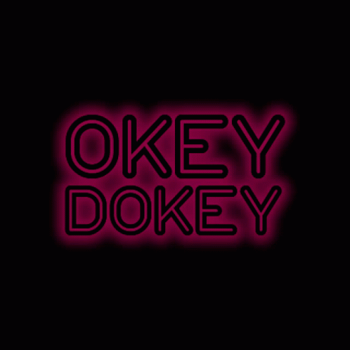 A vibrant pink neon sign displaying the words 'Okey Dokey' against a dark background, emitting a soft glow.