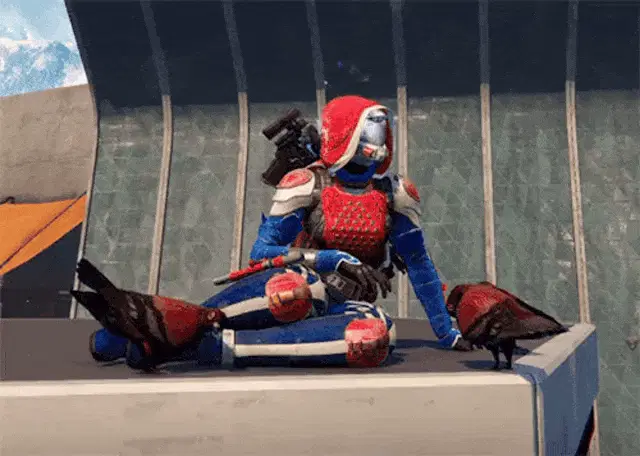 A person's silhouette stands before a wall of intensely red and yellow lights, creating a blurred, glitchy aesthetic.