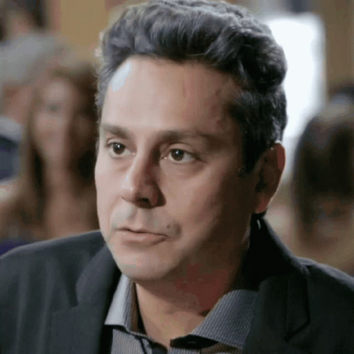 A man in a suit and striped shirt shakes his head with a serious expression during a Nerotico Talk.