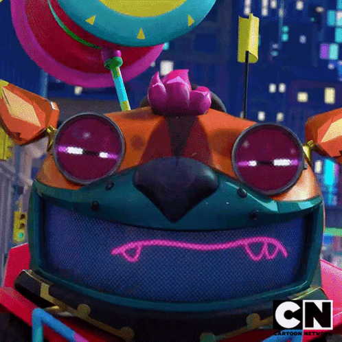 A colorful Batwheels character with wide, frightened eyes and an open mouth, looking scared.
