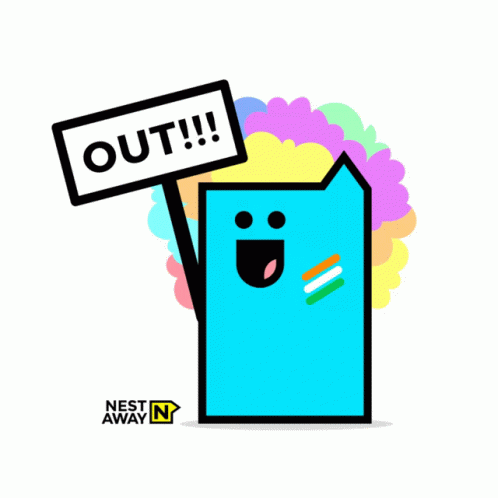 A vibrant cartoon character with an Indian flag holds an 'OUT!!!' sign, celebrating a cricket World Cup moment.