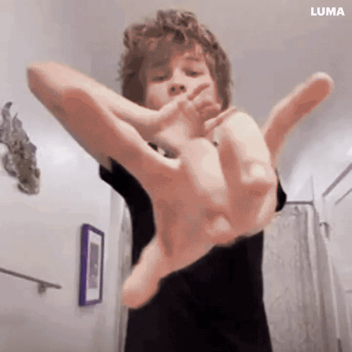 Nettspend transforms into a fluffy purple monster in a bathroom, referencing the Grimace Shake trend.