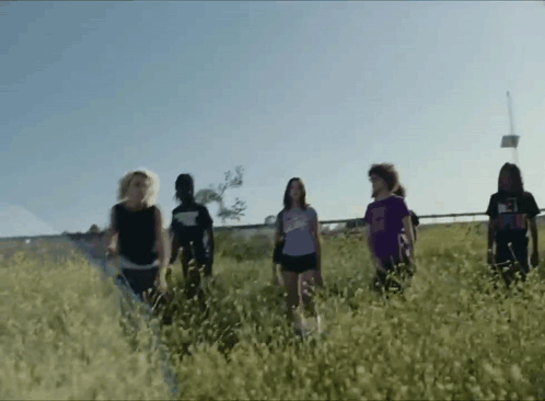 Nettspend jumps incredibly high, appearing to fly above a group of friends in a sunny, grassy field.