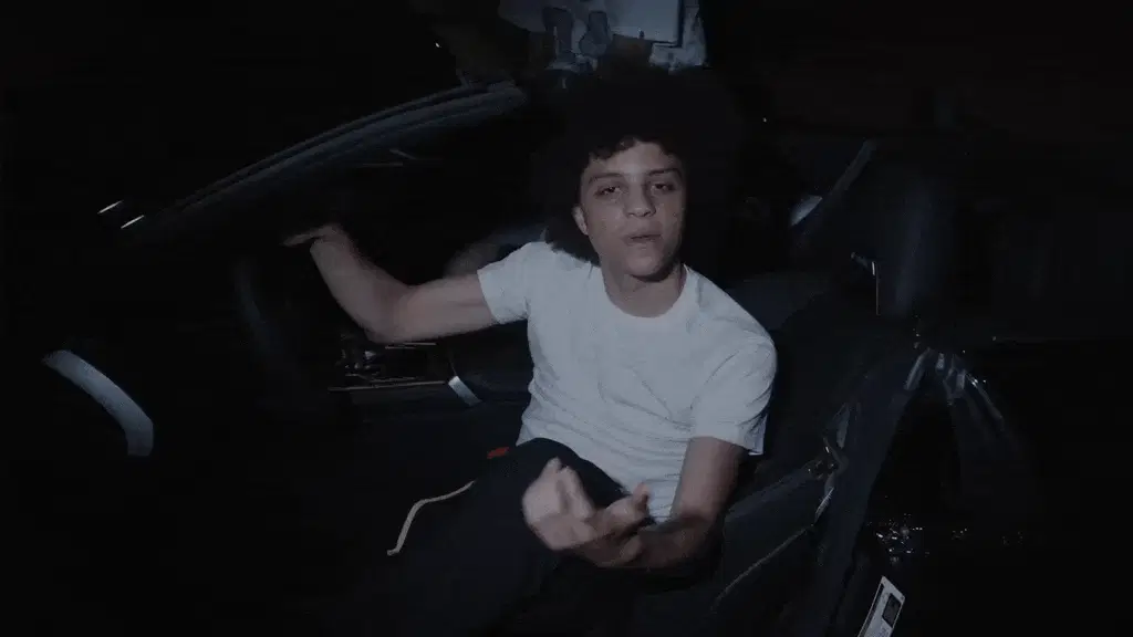Nettspend vibing in a car with colorful lights, moving head and hands.
