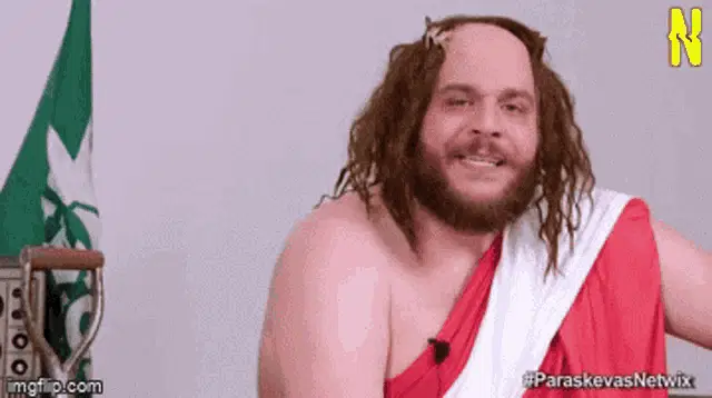 Fanis Labropoulos animatedly confronts Nikos Raptis in a Netwix sketch, with Elena Kremlidou present.