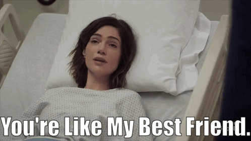 Lauren Bloom (Janet Montgomery) in a hospital bed, expressing 'You're Like My Best Friend.'