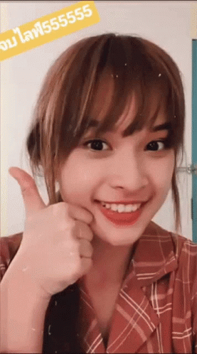 A BNK48 member smiles and gives a thumbs up, with a Thai caption 'End Live hahahaha' visible.