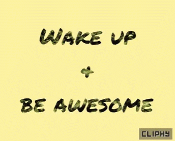 Motivational message 'Wake Up + Be Awesome' displayed on a bright yellow background, promoting positivity.