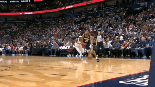New Orleans Pelicans' Trey Murphy III executes a powerful slam dunk during an NBA game.