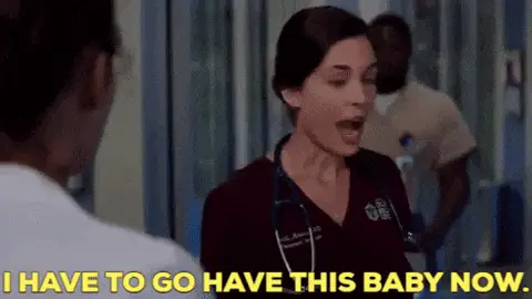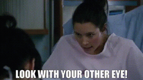 Tess Byrne (Jessica Biel) in a hospital bed, urgently telling someone to 'Look With Your Other Eye!' during labour.
