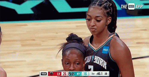 Didi Richards of the New York Liberty stands on the basketball court during a WNBA game.