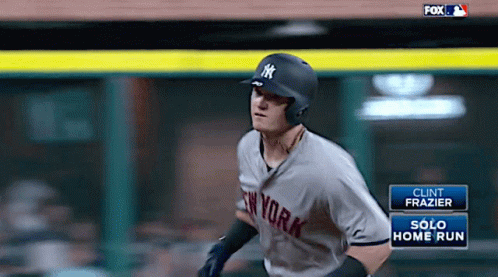 Clint Frazier hits a solo home run for the New York Yankees, rounding the bases after his powerful hit.
