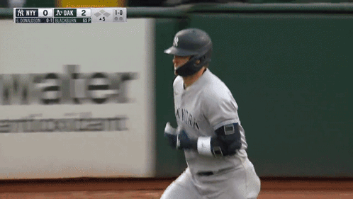 New York Yankees player Josh Donaldson runs the bases after hitting a home run during an MLB game.
