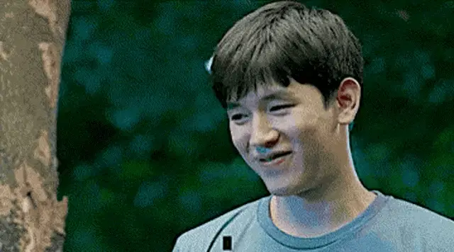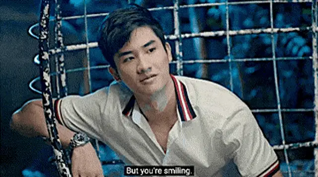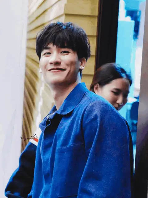 Newwiee New Thitipoom in a close-up shot, running his hand through his dark hair.
