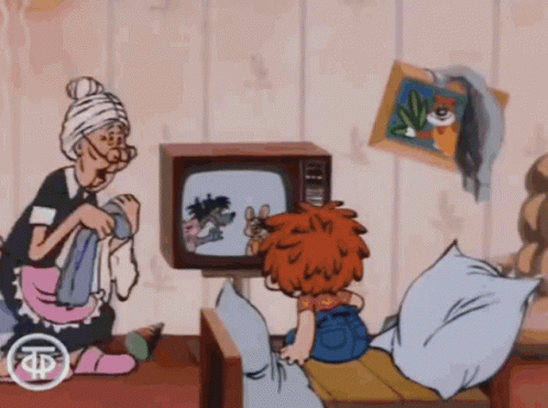 Nekhochuka, the boy, expresses anger by burying his face in a pillow after an elderly woman turns off the TV.