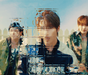 a man 's face is visible through a glass block