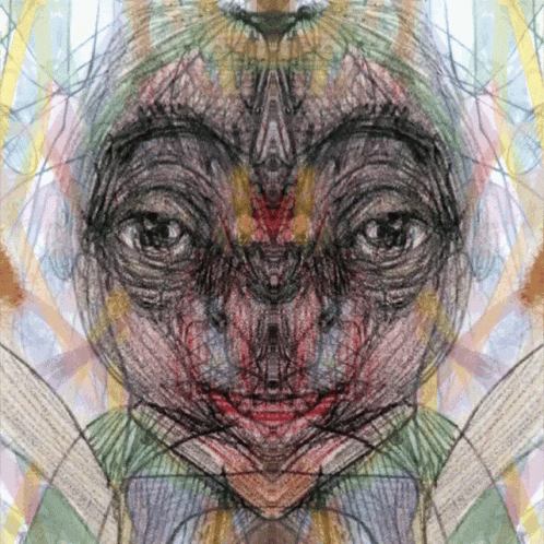 A vibrant, symmetrical digital drawing of a face, created by Luis Ricardo, showcasing unique NFT art.