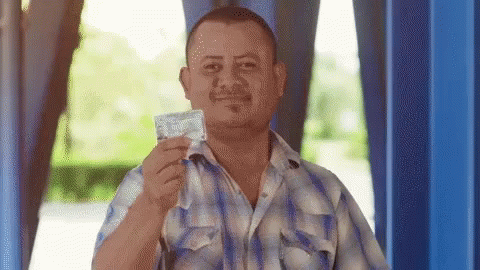 A man in Nicaragua proudly displays his newly issued national identification card, or Cédula.