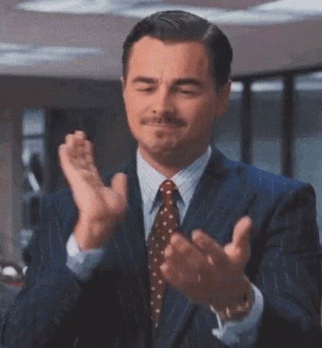 Leonardo DiCaprio, as Jordan Belfort, claps slowly and sarcastically in a faceswap featuring Nick.