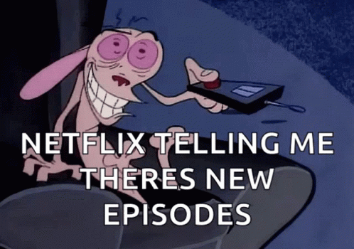 Ren from Ren & Stimpy reacts maniacally to Netflix announcing new episodes, holding a remote control.