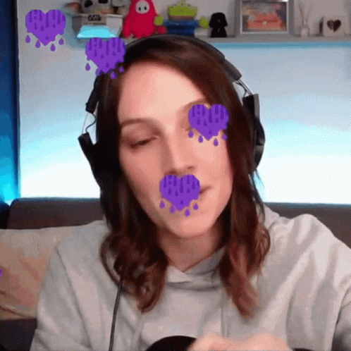 Nickysimss, a streamer, makes a heart gesture with her hands, with a purple heart effect.