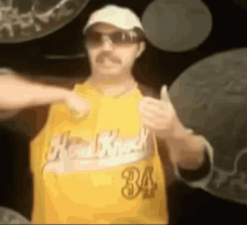 Nicolae Guta, wearing a yellow jersey and sunglasses, gives a double thumbs up with enthusiasm.