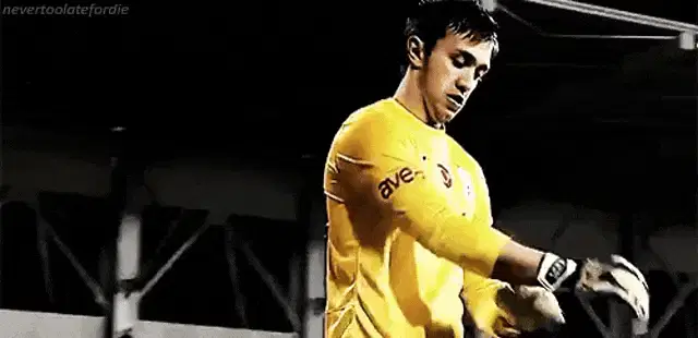 Nicolo Zaniolo, wearing his Galatasaray jersey, stands in front of the club's logo.