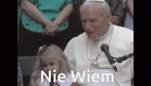 Pope John Paul II interacts with a little girl who says 'Nie Wiem' (I don't know) into the microphone.