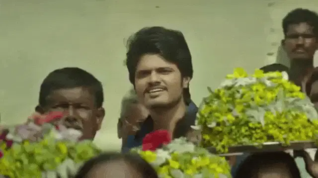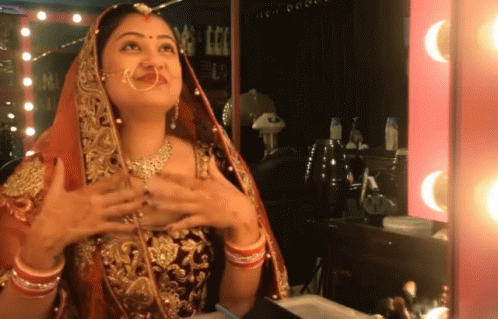 Niharicka beams with joy in traditional Indian attire, expressing her happiness in front of a mirror.