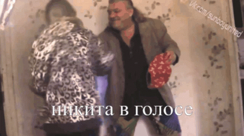 Nikita and Sanboy dance together, with Nikita in voice, in a lively home setting.