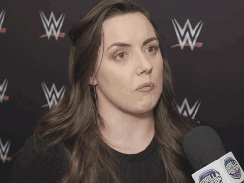 Nikki Cross, also known as Nikki Storm, gives an interview at a WWE event.