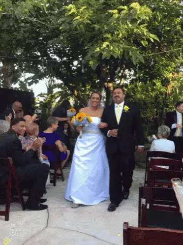 Nikocado Avocado appears as a ghostly bride holding a dark bouquet, standing before a pile of vibrant red petals.