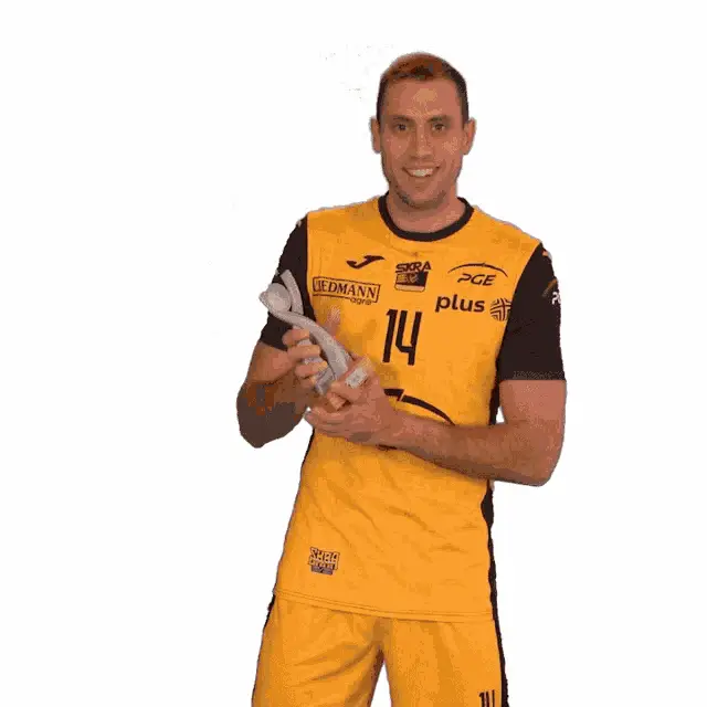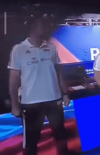 Polish volleyball coach Nikola Grbić reacts and claps during a match, showing enthusiasm on the sidelines.