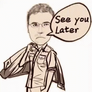 Nildo Viana's animated farewell, with a speech bubble saying 'See you later'.