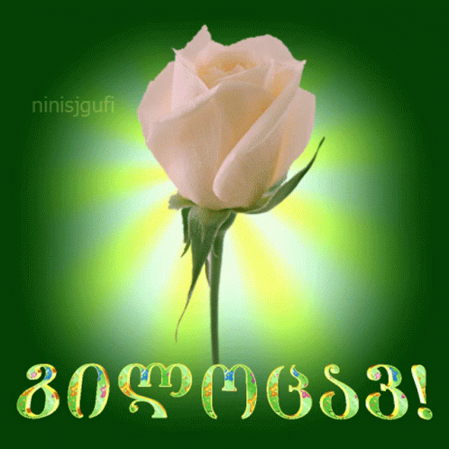 A beautiful white rose on a vibrant green background with 'Ninisjgufi' and a congratulatory message.