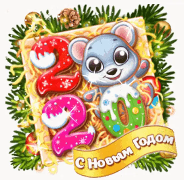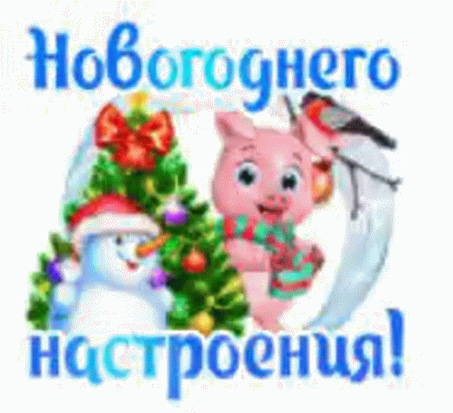 Ninisjgufi: Festive animated New Year's greeting with a pig, snowman, Christmas tree, and bird.