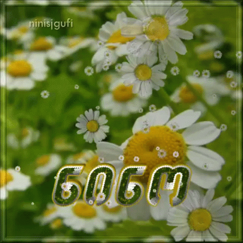 The name ნინო (Nino) beautifully displayed over a vibrant field of daisies, with 'ნინისჯგუფი' also visible.
