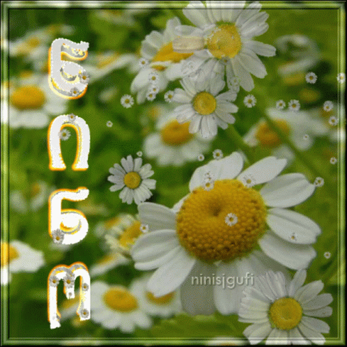 A beautiful field of white daisies with the Georgian name 'ნინო ნინისჯგუფი' (Nino Ninisjgupi) displayed prominently.
