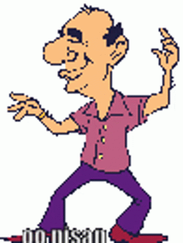 Nisan Mistya as Grand Dad dancing in a pixelated cartoon style.