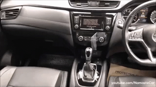 Detailed view of the Nissan X-Trail car interior, dashboard, and steering wheel.