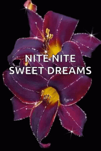 Animated purple lilies with glittery effects and the text 'Nite Nite Sweet Dreams' for a peaceful message.