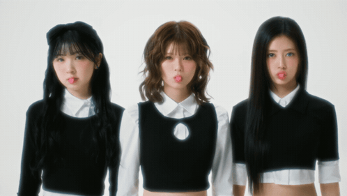 three girls are sticking their tongues out in front of a white wall