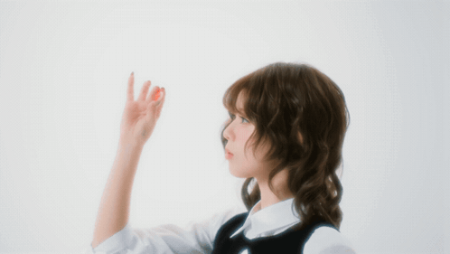 a close up of a woman 's face with a red candy in her hand