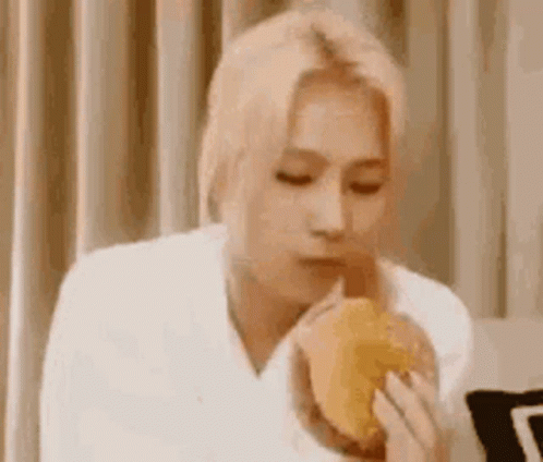 Sana enjoying a large burger in a white robe.