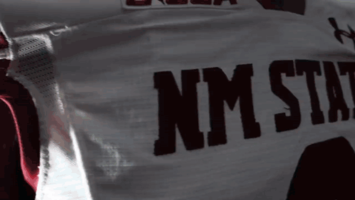 NMSU football player in jersey celebrating with a money spread under green and white lights.