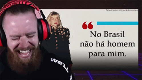 A man reacts with laughter to the 'No Brasil não há homem para mim' meme featuring Xuxa.