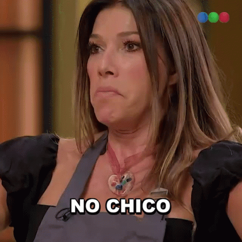 Cathy Fulop emphatically says "No Chico" during an episode of MasterChef Celebrity Argentina.