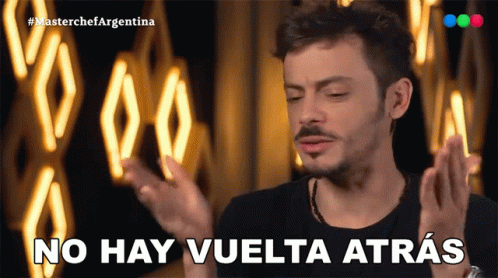 Tomás Fonzi from Masterchef Argentina says 'No hay vuelta atrás' (There's no turning back) with a hand gesture.